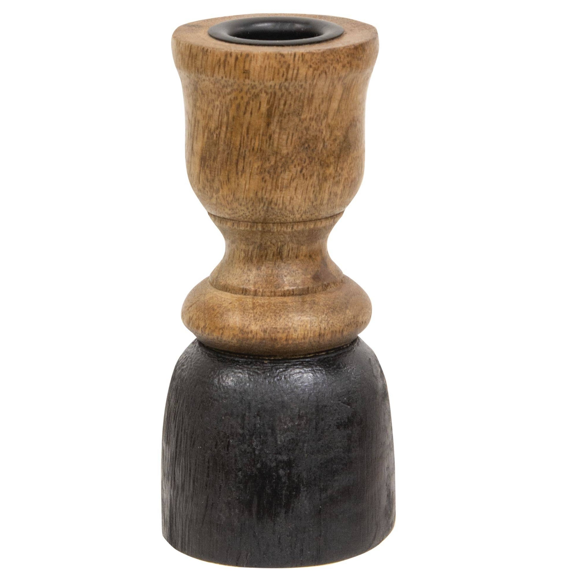 Black & Natural Wood Taper Candle Holder, 5.25"