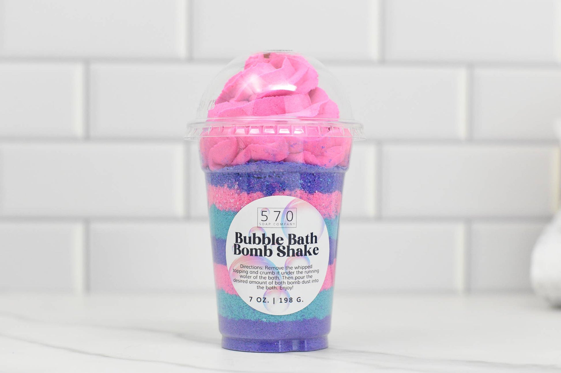 Whipped Topping: The upper portion of our Bubble Bath Bomb Shake features a luscious whipped topping that is not only visually appealing but serves a dual purpose. This solid bubble bath creates a frothy sea of bubbles when crumbled under running water, turning your bath into a bubbly paradise.