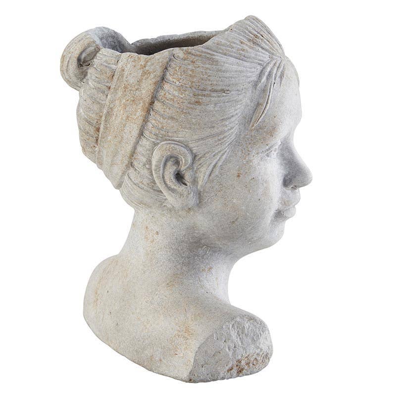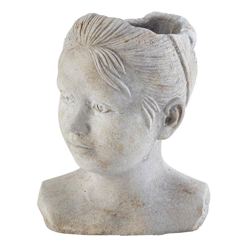 Give your home décor a unique style with this cement girl head pot. Great for indoor or outdoor usage.