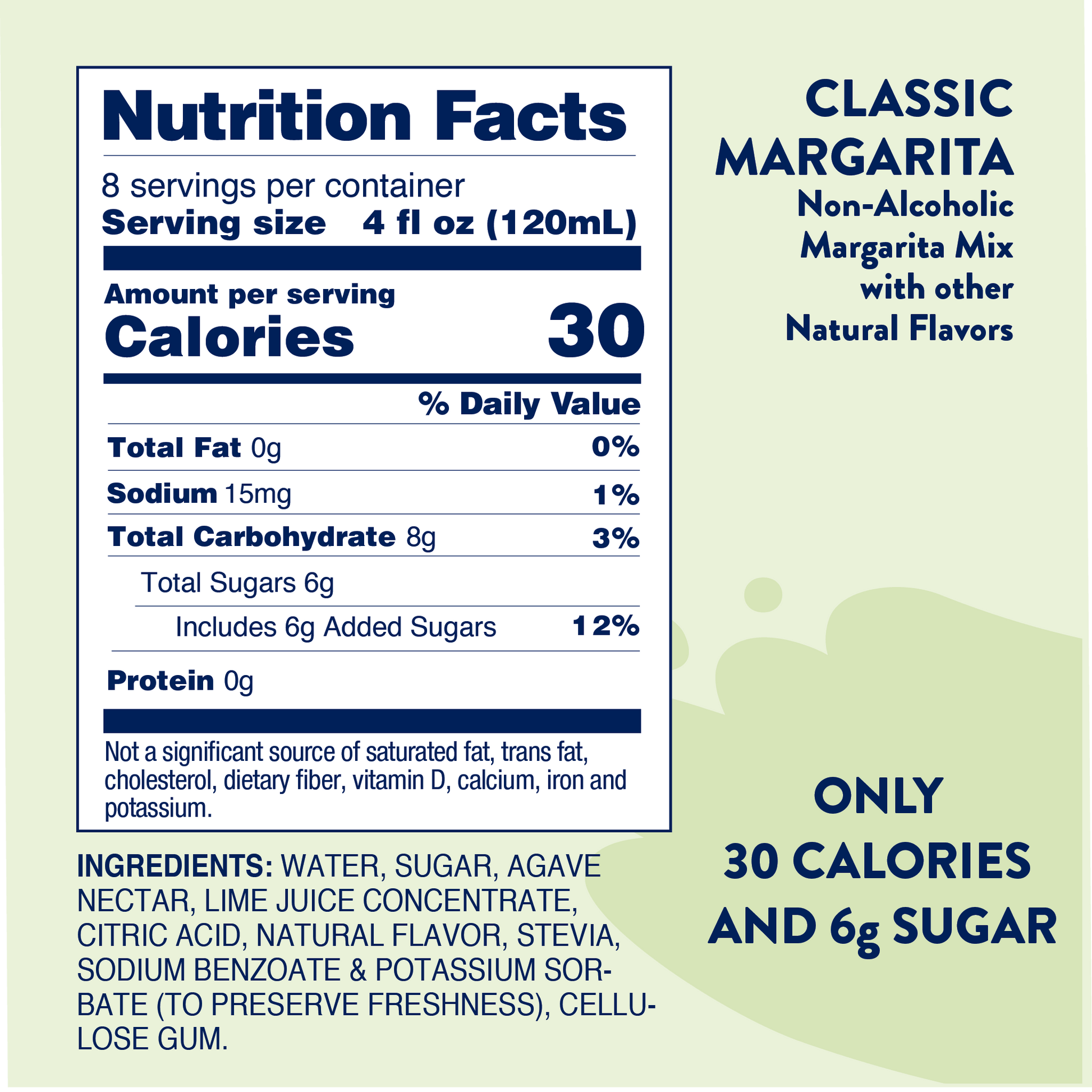 Our Natural Margarita Mix gives you that flawlessly tart flavor using real, fresh limes and a pinch of salt. It is lightly sweetened with agave nectar, stevia and just a hint of pure cane sugar for the perfect sweet and savory flavor of the classic marg that we know and love.