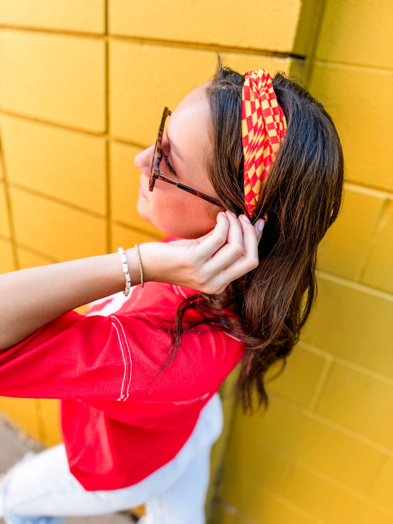 Scarlet/Gold Wavy Checkered Turband Headband