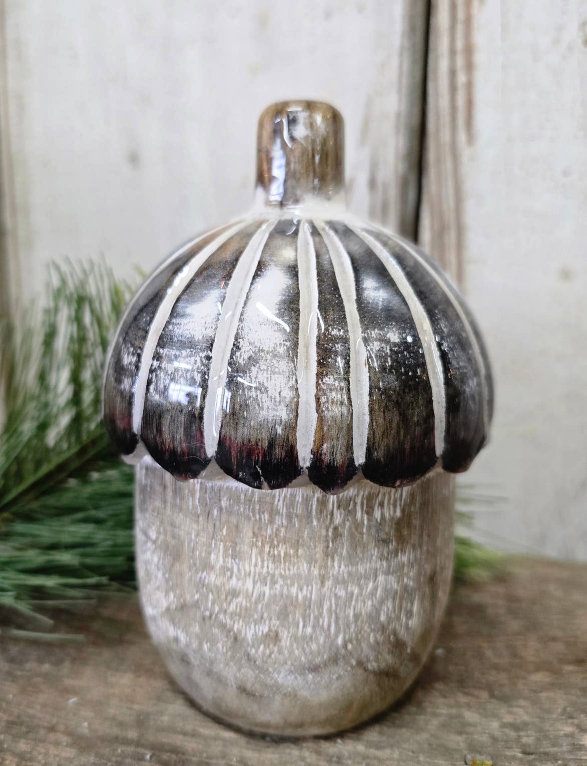 Dress up your tabletop with the Timbered Treasure Acorn from Wholesale Home Decor. This 3.5x6 inch decorative object adds a charming touch to any kitchen or dining area. As a part of our extensive product line, this acorn is a delightful addition to our collection of home decor items, including florals, lighting, metal signs, and more. We at WHD have been providing quality products for over 15 years, ensuring that our customers always have access to the latest trends in home decor.