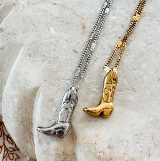This cute gold boot charm necklace is sure to give you that western glam look that is so on trend!
